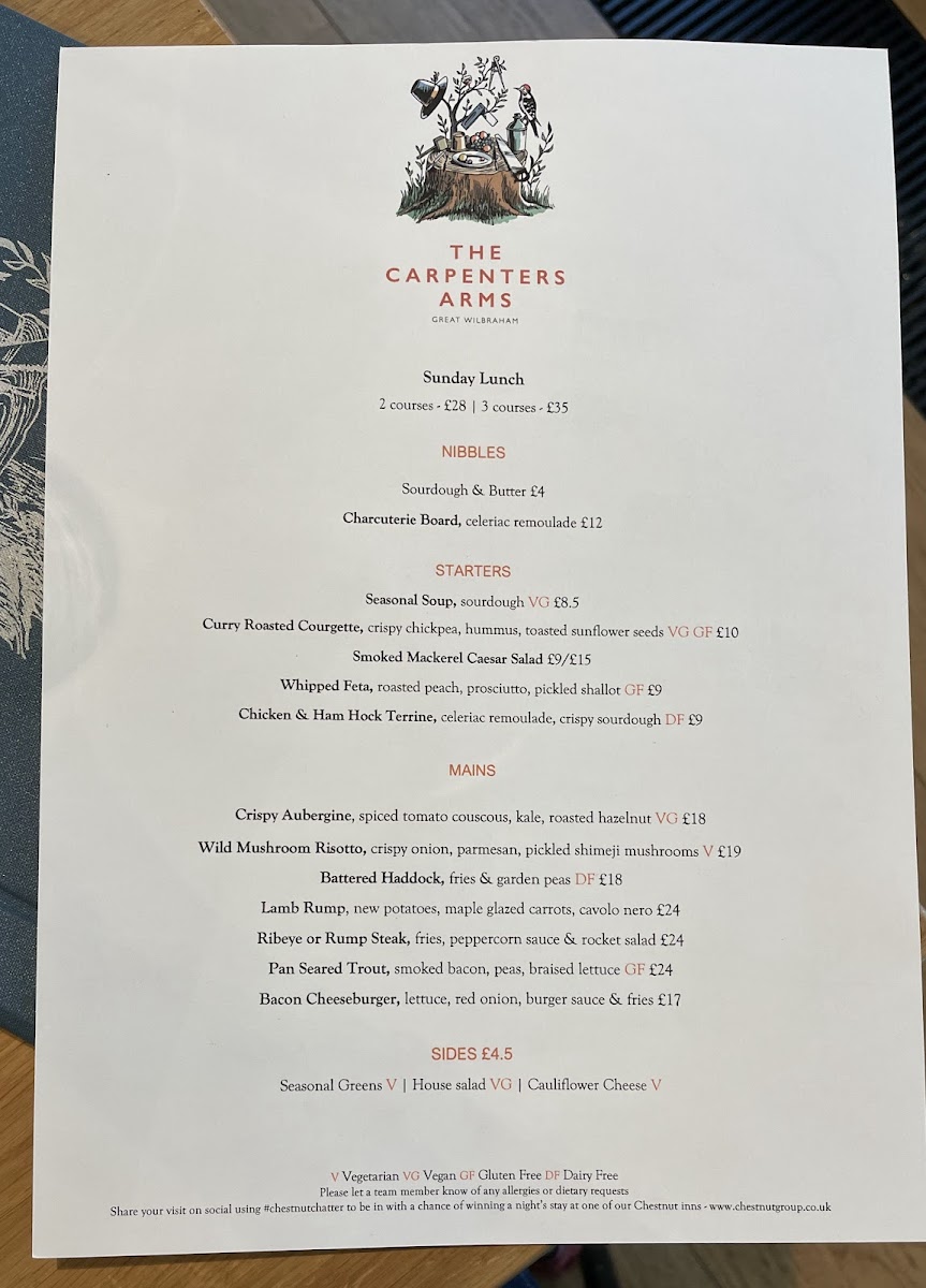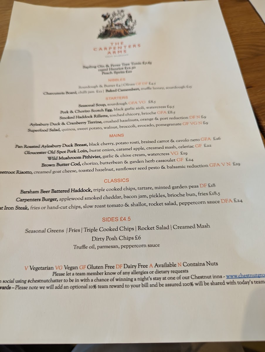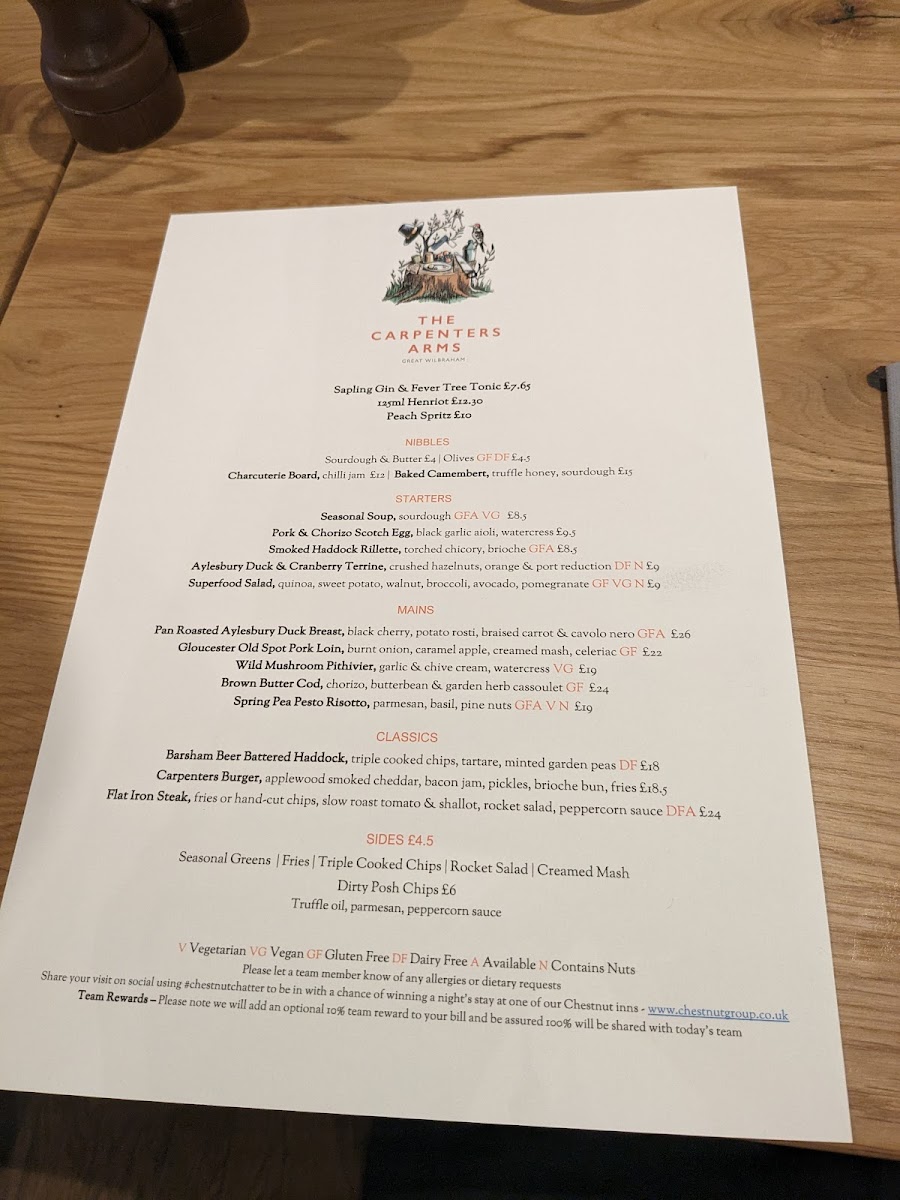 Welcome to The Carpenters Arms, a hidden gem located in the heart of Great Wilbraham. This charming pub-restaurant offers a delightful menu that beautifully marries traditional flavors with modern culinary flair. Starters include enticing options like the Pork & Chorizo Scotch Egg and Aylesbury Duck & Cranberry Terrine, setting the stage for a memorable meal.